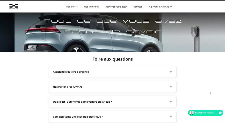 As its a new brand in France, it was very important that the FAQ page will be as detailed as possible, with selected questions, a map section to provide all the necessary focal points, and some content about the car.